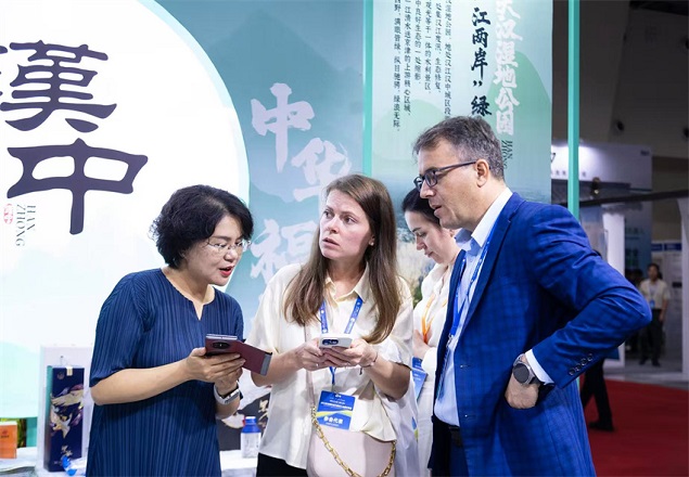 汉中市文旅局局长徐红菊作为“首席文旅推介官”,在开幕式和展馆内向国内外客商热情推介汉中文旅康养产业,详述汉中历史文化和生态资源,并邀请品鉴洋县生态黑米酒及汉中仙毫等。现场互动频繁,咨询、洽谈与打卡拍照者络绎不绝,气氛热烈。