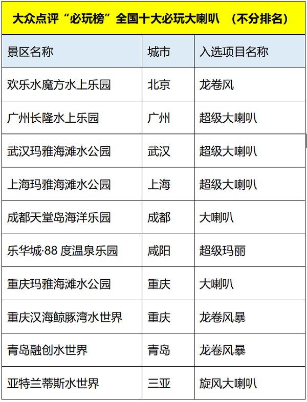 7月3日,大众点评发布“必玩榜”夏季热门特色游玩场景主题榜单,聚焦夏季最受欢迎的大喇叭水上滑梯、漂流河两大当季热门特色游玩场景,优选出全国十大必玩大喇叭、全国十大必玩漂流河,成为用户暑期出游的重要参考指南。
