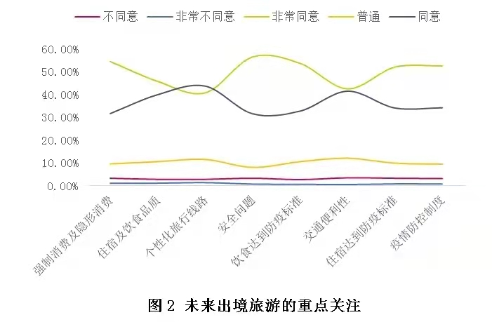 安全、近程和陪伴成为未来出境旅游的关注重点。“出境旅游的安全问题”是受访者的关注重点,影响出境游的主要因素有“安全隐患”和“时间不足”。调查数据显示,出境旅游成行的前提为疫情受到充分控制,82.8%的受访者在只有确信某个目的地不再有新冠感染时才会出行。受访者更倾向于避免选择拥挤的旅游目的地。81.6%的受访者表示未来一段时间内会选择境内旅游,而不是出境旅游。71.7%的受访者由于新冠的爆发不太愿意选择航空方式出境旅行。