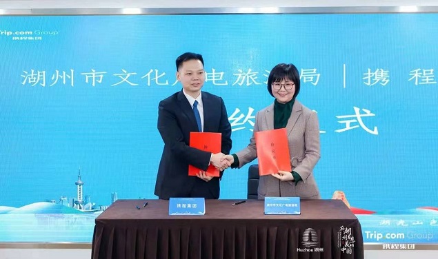 湖州市再次与携程集团签订合作协议,共同成立携程BOSS直播基地和携程酒店大学湖州学院,开通“在湖州看见美丽中国”星球号,启动新一轮旅游推广合作,拓展线上服务和营销推广,全面打响“在湖州看见美丽中国”城市品牌形象和“湖光山色·度假之州”目的地品牌。