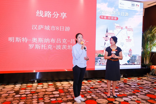 在活动现场,德旅局还就德国历史名城联盟今年在中国市场的一项互动推广活动与参与者和现场来宾进行了对话,暨“业内线路设计大赛优胜者分享”。该活动面向旅业同仁,共征集到62条线路产品策划案,参赛者来自全国11个不同的城市,并从中评选出了5条优质线路,该活动在社交媒体上的曝光量达到25万+,取得了有效的传播效果。作为线路设计的优胜者,参赛嘉宾也被邀请到活动现场,分享他们的线路设计思路,并围绕当下游客出境时该如何挑选路线,哪些目的地适合游玩,作为业者该如何对境外目的地进行资源整合和产品调整等做了精彩分享。