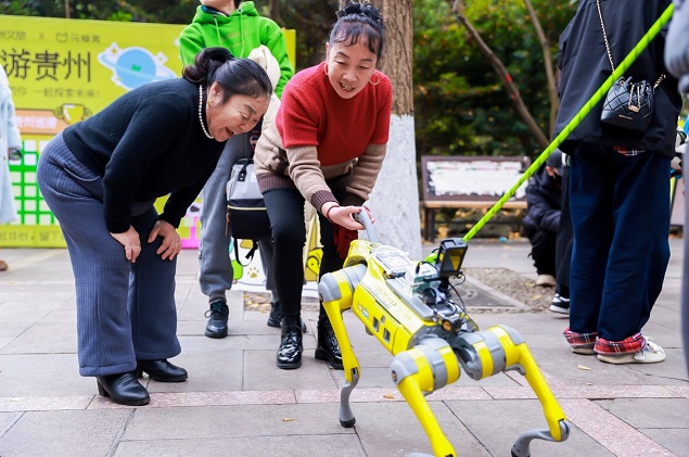 2025元旦假期,贵阳用一场兼具科技感与趣味感的快闪活动成功吸引游客目光。由马蜂窝打造的10只涂装各异的“AI BOT”具身智能机器狗亮相贵阳黔灵山公园,在公园主要路线展开巡游,通过舞蹈表演、游客互动、语音交互问答等精彩环节,不仅为元旦欢庆带来了浓厚的科技氛围,也在新年伊始展示了AI智能科技加持下的贵州文旅产业发展新成果。