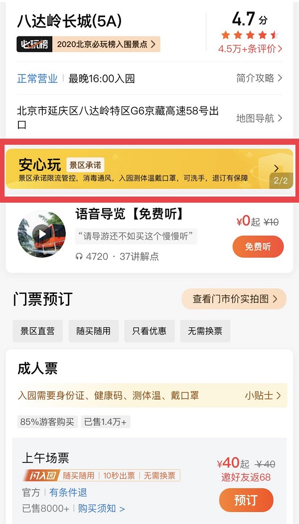 在景区信息获取便利度方面,《标准》要求景区方面通过互联网平台“今日开园”“安心玩”“今日售罄”等标签产品及时披露开闭园信息、限流要求等内容,做好安全出游宣传引导。目前,已有超3300家景区通过美团“安心玩”向公众展示开闭园情况以及防疫消杀工作进展。