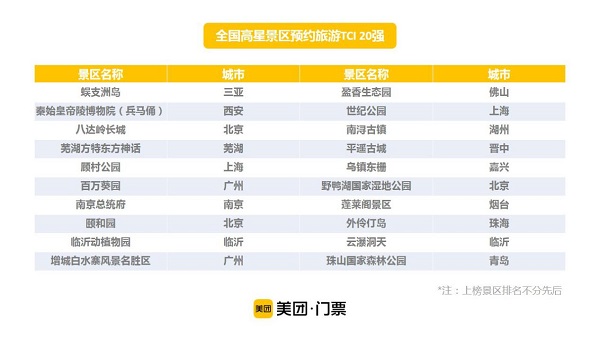 据介绍,TCI由中国社会科学院财经战略研究院和美团点评联合课题组发布。此次发布的景区预约旅游便利度指数就是延续TCI的分析模型,从购票、入园环节分析评价全国已开园高星(5A、4A)景区是否支持网络购票、分时预约购票、闪入园等服务。