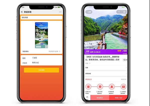 本次51智慧旅游帮助安徽自驾游网全新升级的分销系统,能够助力安徽自驾游网彻底打通13家地市联盟成员的产品互通互享。告别过去通过微信、QQ转发产品的低效方式。不仅自驾游产品可以一键分销,旅游画报、短视频还支持一键生成带分销同行自己logo、二维码、联系方式的内容,大大加快了旅游产品分发效率。每家旅行社背后都有成千上万客户,每个旅游从业者都有自己的人脉和客户群,借助砍价、秒杀、拼团、社区团购等丰富营销组件,安徽自驾游网与联盟成员都逐步形成了自己的私域流量池!