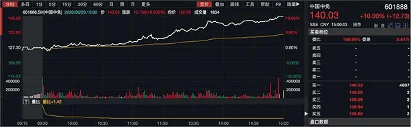 6月29日一早,中国国旅证券简称正式更名中国中免(601888),临近午盘,公司股价急速拉升再创新高。