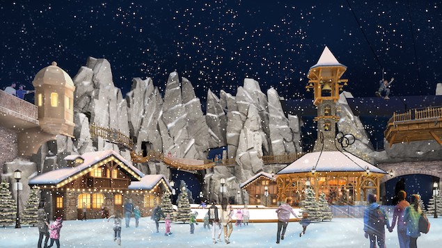 (阿尔卑斯雪世界 夜景鸟瞰效果图)