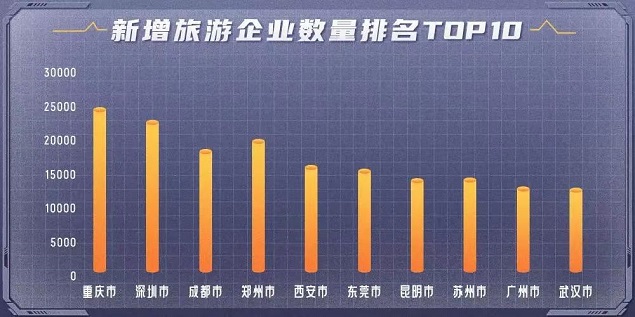 2023年1-4月份期间,全国新增旅游相关企业数量为105.86万家,与2022年同期相比,上涨33.6%。从城市分布来看,重庆市以增长2.47万家位居首位。其次是深圳市、成都市等地,分别新增2.16万和1.80万家。随着我国经济的不断复苏,旅游业的发展势头日益强劲。