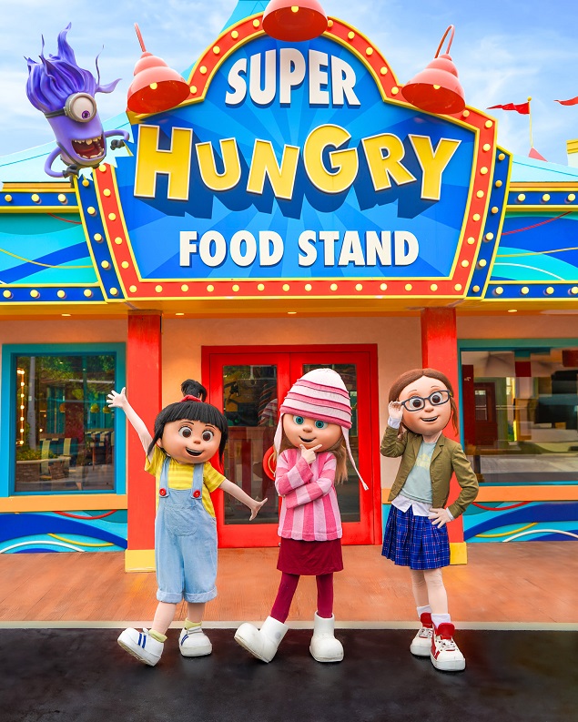 超级萌乐岛的设计取材自《神偷奶爸》中的海滨狂欢节场景,游客可以乘坐“小虫萌萌转”旋转木马,伴着由DJ卡尔混音的流行歌曲尽情摇摆,还能在“超萌漩漩涡”上翱翔天际。这里还有更多有趣的游戏等着大家。比如“太空杀手”,这是一个仿照《神偷奶爸》中“超级疯狂太空杀手”街机游戏打造的游戏摊位;还有“香蕉凉台”,在这里成功翻转香蕉就有可能从小黄人那里赢得一份奖励。当你玩了一整天,饥肠辘辘的时候,“饿饿小吃摊”会提供一系列以《神偷奶爸》和小黄人系列电影为主题的美味佳肴。其中有倒霉鸭奶油炖鸡、斯图尔特日式咖喱唐扬炸鸡、超级疯狂素食汉堡,以及小小老大午餐盒等。除此之外,游客还可以到“蕉蕉爆米花”品尝小黄人主题口味的爆米花。