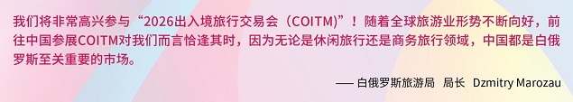 此外,俄罗斯战略研究中心国际旅游发展中心(俄罗斯国家旅游局)、突尼斯旅游局、白俄罗斯旅游局等也对2026 COITM的举办表达了强烈支持和参与愿望,彰显出国际社会对中国旅游市场的高度信心!