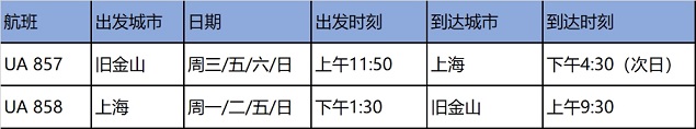 自2020年10月21日起,美联航上海往返旧金山航线将无需再经停韩国首尔。今年2月,由于新冠疫情原因,美联航曾暂时停飞中美航班,此前美联航是运营中美航线最多的美籍航空公司。在2019年,美联航每日运营五班从上海出发至其枢纽城市——旧金山、洛杉矶、芝加哥、纽约/纽瓦克的航班。