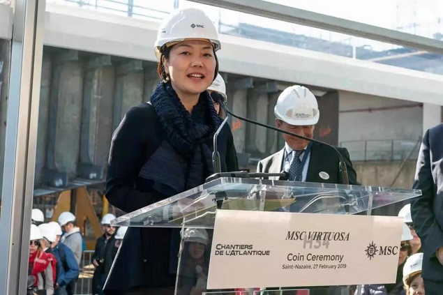 MSC地中海邮轮中国区总裁黄瑞玲女士担任华彩号硬币教母,她是全球首位担任硬币仪式教母的国际邮轮公司中国高管