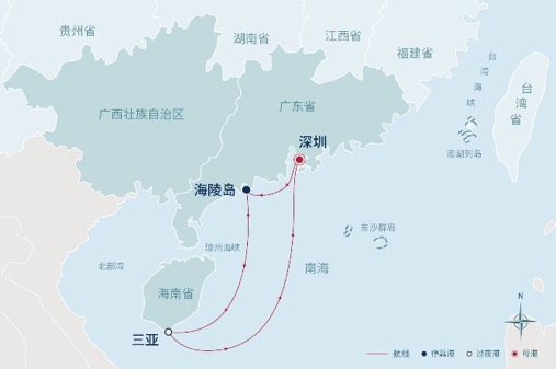 2023年航线之一“魅力南海之旅”(深圳-阳江海陵岛-三亚-深圳)将从鹏城深圳一路南下,带领宾客前往阳江探寻宋代沉船奥秘,穿梭三亚感受椰风海韵,随后返回深圳。