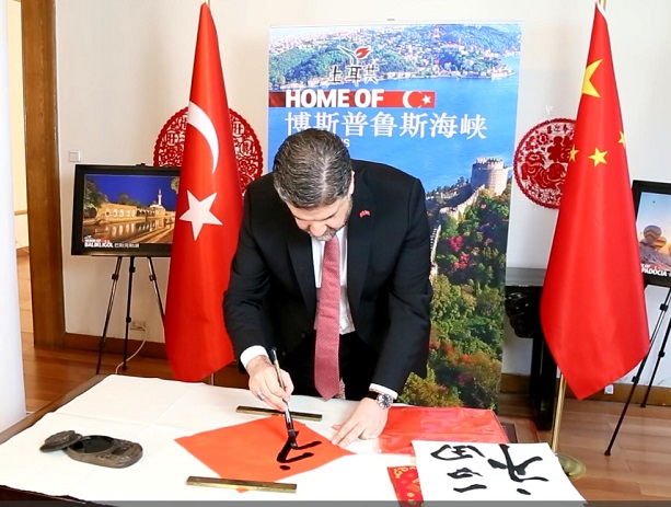 土耳其驻华大使写“福”字,送祝福