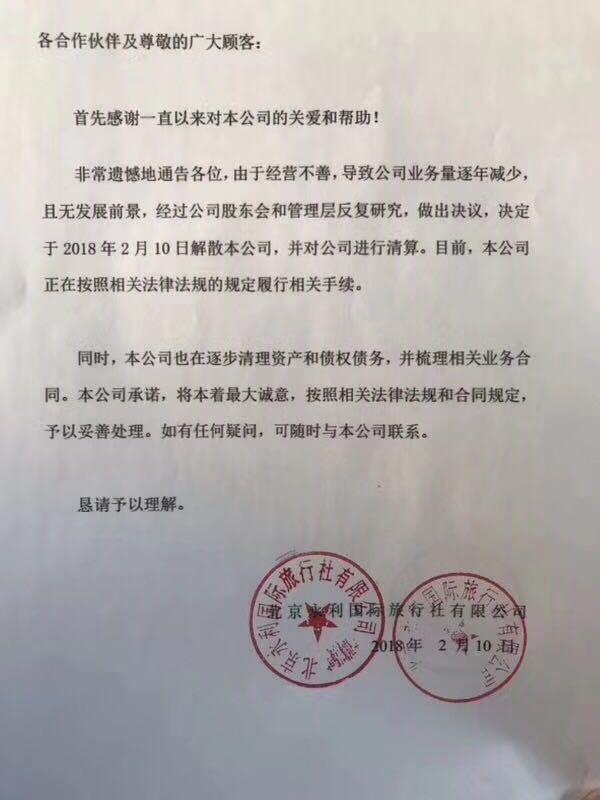 部分爱嘉途的合作商收到了爱嘉途的书面通知,表示公司已于2月10日解散,正在逐步清理资产和债权债务。