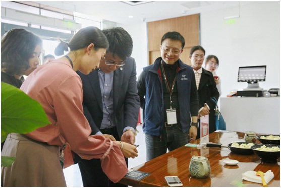 戴斌一行在陈亮、Nancy等人陪同下参观了集团展厅,详细了解集团发展历程、技术创新和社会责任等使命愿景。参观过程中,戴斌非常细致地进行了现场互动,不时就看到的无人送餐机、“星空”大数据等创新产品饶有兴致的提问,他对美团点评集团“吃得更好 生活更好”的企业使命给予高度肯定,认为这与满足人民日益增长的美好生活的需求是高度一致的,同时对于美团点评在短短几年取得的成绩表示充分认可。