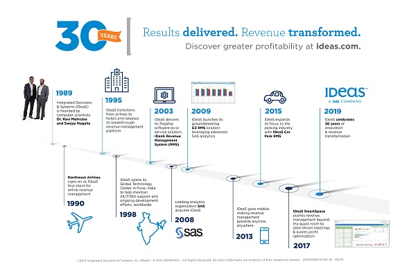 IDeaS Revenue Solutions通过提供最先进的定价及收益管理系统和咨询业务,一直引领行业发展。目前,每天有超过160万间酒店客房通过IDeaS先进的系统进行定价。IDeaS公司采用SAS分析技术,利用将近30年的行业经验为来自124个国家超过10,000多的客户提供服务,持续努力地为酒店管理者提供更有见地的数据管理方式,以便其更好地进行定价。