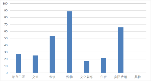 图3 2017年中国内地受访出境游客各消费项目选择占比(%)