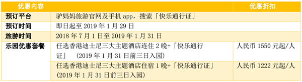 3 次入园玩转香港迪士尼三大精彩主题活动香港迪士尼和驴妈妈一起推出了专为内地宾客而设的【快乐通行证】!在 2018 年 7 月 1 日至 2019 年 1 月 31 日的 7 个月内,一票价钱,3 次入园玩转香港迪士尼三大精彩主题活动:暑假、万圣节和圣诞节。【快乐通行证】还打包度假区酒店,让宾客无忧无虑, 轻松度假!现在预订,就可投入香港迪士尼乐园精彩纷呈的夏日「迪士尼巨星嘉年华」,开启玩不尽,乐无穷的水动暑假 2 天 1 夜假期!