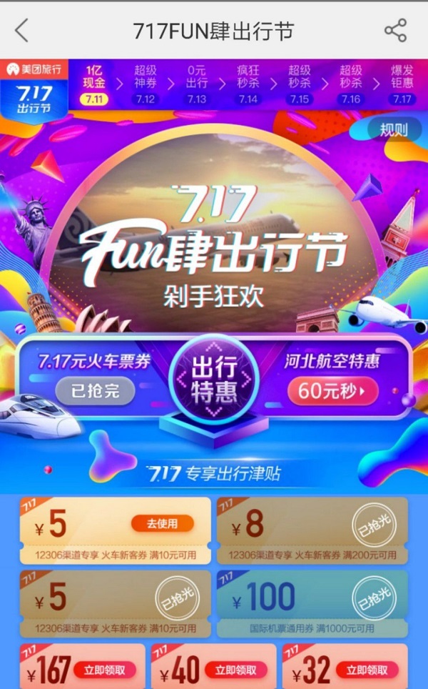 美团旅行打造“717FUN肆出行节” 狂撒1亿红包券