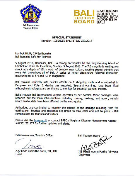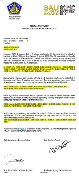 巴厘岛所在的巴厘省也发布了官方声明