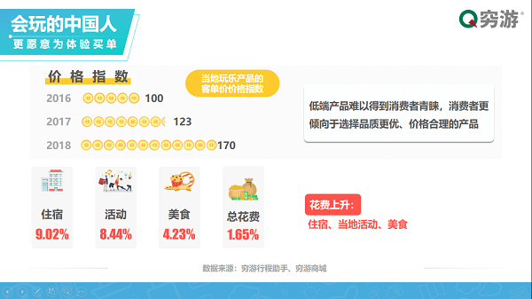 2018年“消费降级”成全网热议问题,反观出境游消费数据,仍呈上升趋势。据数据报告显示,2016年到2018年,旅行者在当地玩乐产品的客单消费额持续增加,更多国人愿意为体验买单。旅行者花费在住宿的比例相较于2017年增长9.02%,对四星、五星酒店的选择率也逐年增长。从出境游消费来看,“消费降级”并不等于全面降低出行标准,只是旅行者在抉择时会寻求更具合理性价比的产品,这也将促使旅游供给侧提供更多优质、高性价比的产品。