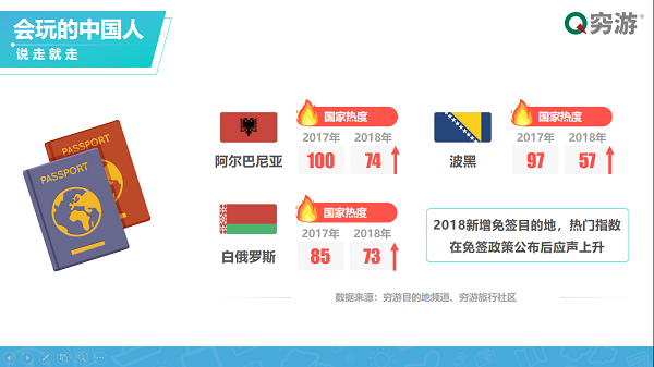 同时,小众目的地的崛起也受签证政策的影响。2018新增免签目的地如阿尔巴尼亚、波黑、白俄罗斯等,其目的地热门指数也在免签政策公布后应声上升。