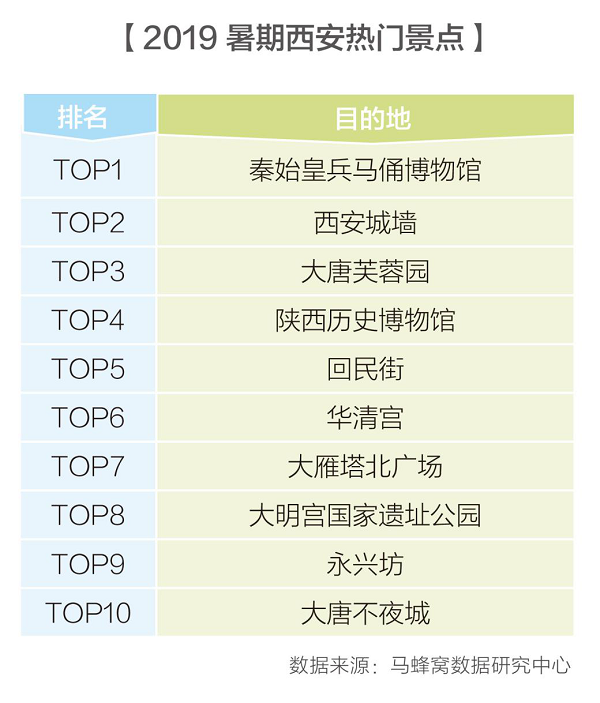 马蜂窝大数据显示,电视剧播出后,西安历史文化类景点热度增长迅速,6月底,西安排名前十的热门景点几乎全部与历史文化相关。秦始皇兵马俑博物馆仍是西安热度最高的景点,以隋唐皇城为基础,修建于明代的西安城墙热度上升至第二位。此外,大唐芙蓉园、华清宫、大明宫国家遗址公园、大唐不夜城等与唐文化相关的景点也进入热度榜前十。
