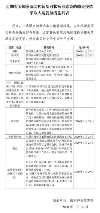 与此同时,据去哪儿网系统监测数据显示,各国也相继调整了有关中国居民的签证政策。菲律宾自1月28日起暂停向中国公民签发落地签证,哈萨克斯坦暂停中国公民72小时过境免签证策,马来西亚暂时拒绝持中国护照且签发地或出生地为“湖北”的人员入境,新加坡暂停所有在过去14天内到放过湖北的中国公民,以及持有湖北省签发护照的中国公民入境或转机,日本、韩国、越南、英国等国家要求中国民须填写并提交健康状况申请表。