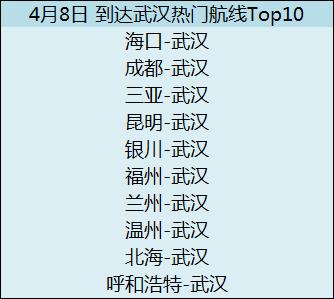 (4月8日去哪儿网平台上,到达武汉的热门航线Top10)