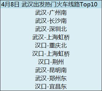 (4月8日去哪儿网平台上,武汉出发热门火车线路Top10)