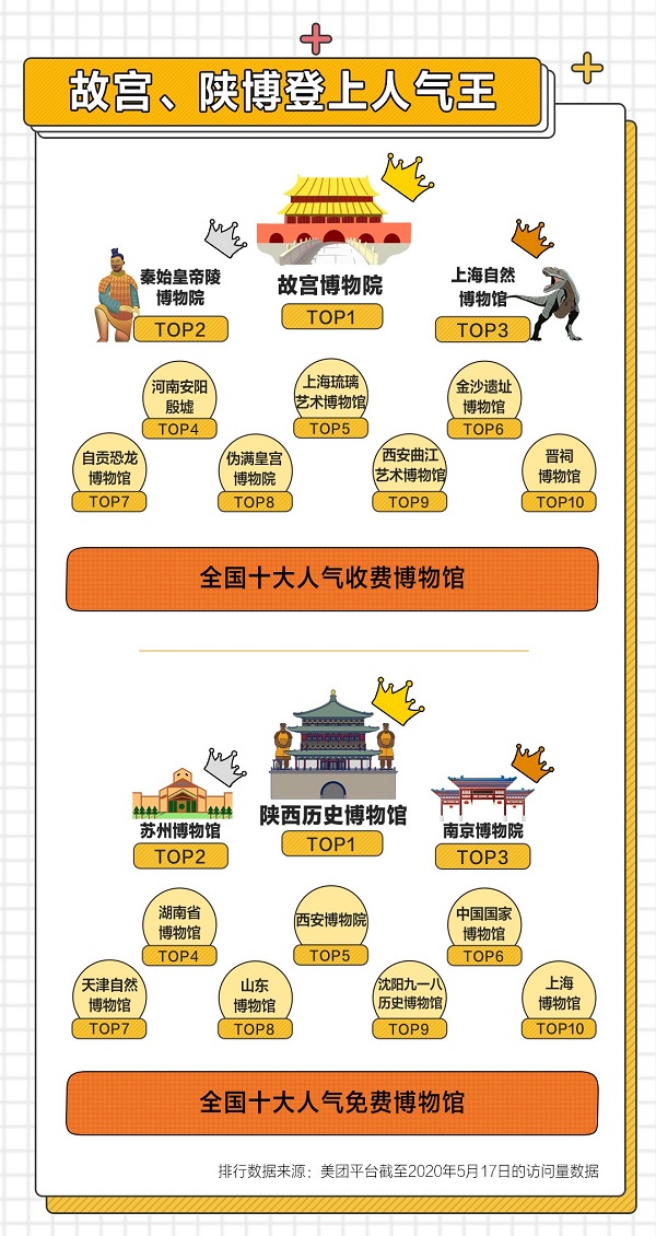 5月18日,即国际博物馆日,《美团博物馆“预约旅游”大数据报告》(以下简称《报告》)出炉。《报告》显示,国内博物馆按下“重启键”,超70%已恢复对外开放,并正出现“线上预约潮”。为按照瞬时最大游客量的30%控制客流,全国已有西安博物院、沈阳“九·一八”历史博物馆等多家博物馆联手美团推行分时预约服务,未来美团将逐步服务上千家博物馆。