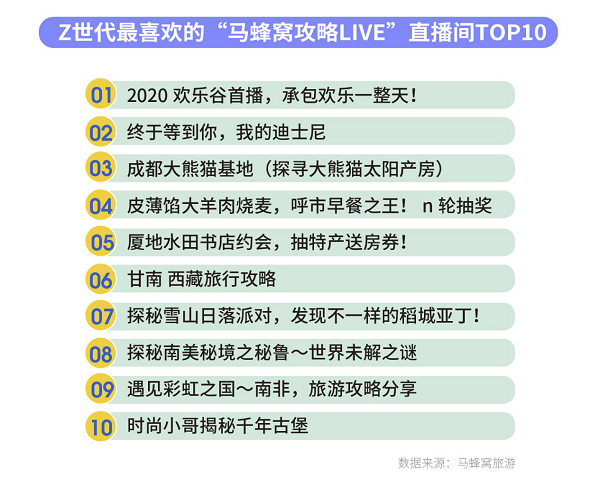 疫情期间,视频化的旅游内容成为年轻旅行者释放旅行意愿和在线种草的重要方式。他们喜欢的旅行内容也呈现出多样化、个性化的特点,从欢乐谷、迪士尼等主题公园,到大熊猫基地这样的“萌系景点”,从吃货最爱的羊肉烧麦,到适合文艺青年的水田书店,从国内的甘南、川西,到远隔千山万水的秘鲁、南非,都有他们喜爱的旅游直播内容。