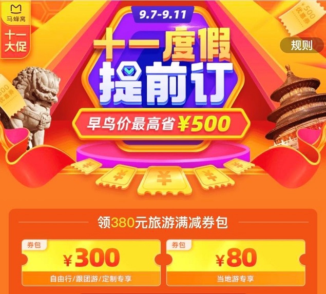 国庆旅游提前订,马蜂窝“早鸟价”准时出发
