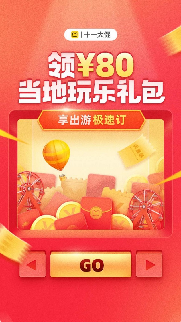 活动期间,登录马蜂窝旅游APP或小程序,即可获取“极速订”专属优惠券。本次活动的产品覆盖全国各大旅游目的地,主要针对当地玩乐、门票和酒店等适合即时预订的产品品类。活动周期也从节前一直延续到十一黄金周结束,让游客能够畅玩整个假期。
