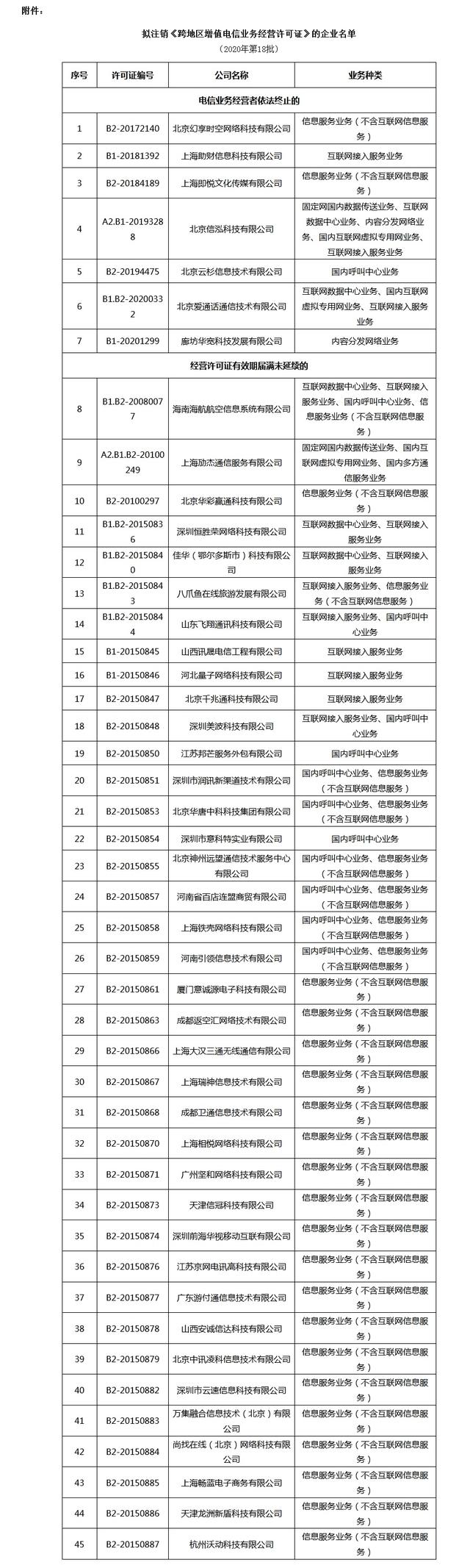 工信部拟注销45家企业跨地区增值电信业务经营许可