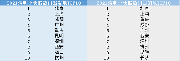 从旅游目的地来说,除北京外,上海、成都、重庆、广州、西安、深圳、杭州、昆明、长沙都是今年清明长假的热门旅游目的地。
