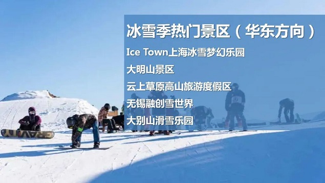 华东方向,Ice Town上海冰雪梦幻乐园、大明山景区、无锡融创雪世界等一批冰雪主题的景区和乐园成为“包邮区”游客的热门去处。