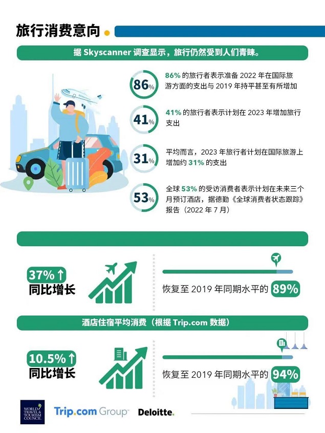 在这份跟进报告中,WTTC 再次携手全球领先的一站式旅行服务平台携程集团及其主要消费品牌Trip.com、携程与Skyscanner,并连同全球咨询公司德勤,对上一年影响旅游与旅游业的趋势进行了总结,并对 2023 年的趋势做了展望。