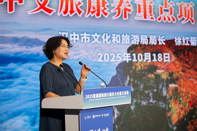 10月17日,2025首届国际旅行服务大会暨交易展在海南三亚保利国际博览中心盛大启幕,本届旅服会展览面积达12000平方米,汇聚了全球20余个国家和地区的220家优质文旅企业,吸引近2000家产业链企业参与对接,注册专业观众近3000人。汉中市文化和旅游局精心组织,以“两汉三国•真美汉中”文旅品牌为核心,在国内旅游专题展区精彩亮相。开幕首日,“汉中专题馆”凭借深厚的文化底蕴、丰富的旅游资源与独具特色的非遗文创产品,吸引了大量国内外嘉宾、旅行商及媒体驻足,成为全场焦点之一。
