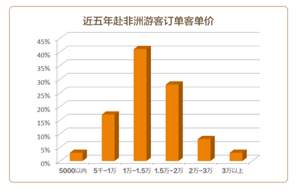 中青旅遨游网的赴非游客数据显示,非洲地区逐渐成为关注深度游、品质游、个性化旅游、猎奇游的中国游客首选目的地,近五年中青旅遨游网赴非洲游客人数累计超五万人,近两年平均增长速度在40%以上。