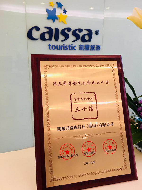 借时代东风传文化魅力 凯撒旅游荣获“首都文化企业30佳”称号