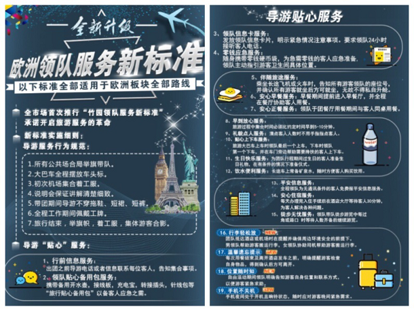 ■ 2018年1月,《全景旅游领队服务新标准》正式施行,新增4项领队服务,领队服务标准共计26条,再次引领行业服务升级浪潮。2018年11月,全景旅游举行2018年度欧洲领队交流大会,以《服务与规范》为主题,深度探讨学习领队服务的细节、规范。