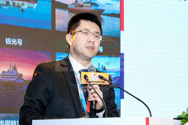 图为海达路德游轮中国负责人李红滨介绍海达路德游轮公司
