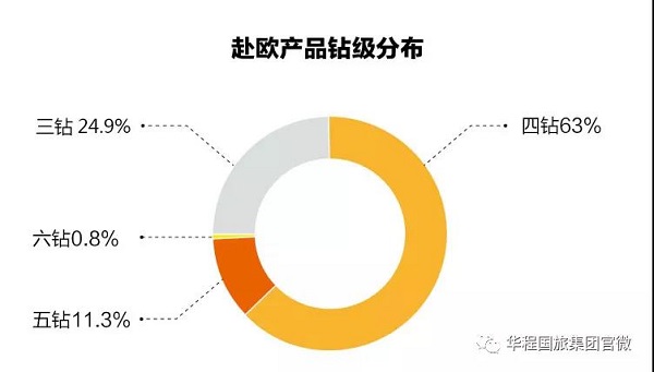 2019年上半年,从游客的性别年龄分析来看,赴欧洲游客女性占比62.9 %,男性占比37.1% 。游客年龄层上50、60后合计超过50%,70后以12.7%的占比位居第三。根据华程国旅集团的数据显示,上半年赴欧跟团产品中,爸妈放心游、春夏赏花产品备受青睐,成为最受关注的出行选择。从人均消费看,2019上半年我国游客报名欧洲跟团游,平均花费11920.7多元,费用成本相比2018年略有上升。从产品的钻级来看,2019年通过华程国旅集团预定的欧洲旅游产品中,高钻级产品占比近8成,其中,四钻舒适型占比63.0%,五钻及以上产品占比12.1%。
