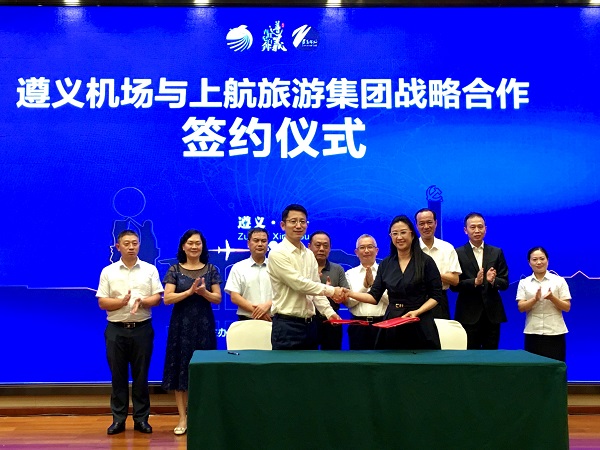 2020年7月9日,上海航空国际旅游(集团)有限公司(以下简称“上航旅游集团)与遵义机场有限责任公司在遵义签订合作协议,双方结成战略合作关系,依托各自资源与产业优势,实现强强联手、合作共赢。绿地酒店旅游集团总经理李瑞忠,上航旅游集团总经理靳黎军、遵义市发改委党组书记、主任徐江,遵义市财政局副县级干部王云秀,遵义市文旅局党组成员、副局长梁卓,遵义机场党委书记、董事长简书刚,遵义机场党委副书记、总经理杨长萍等领导出席签约仪式。
