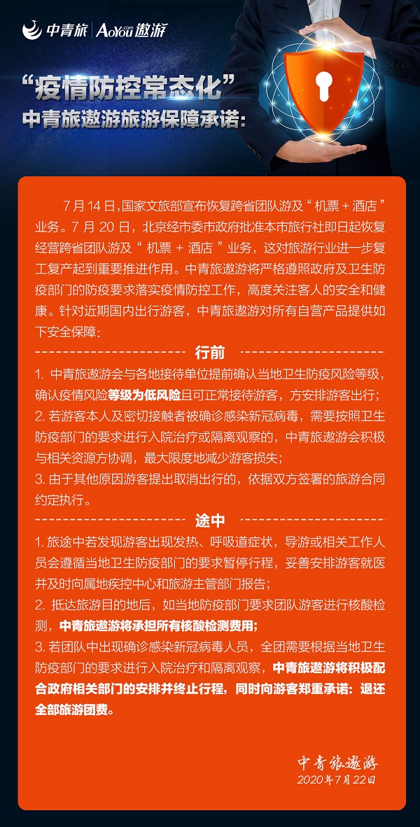 “疫情防控常态化”中青旅遨游推出旅游《多项保障,双重承诺》