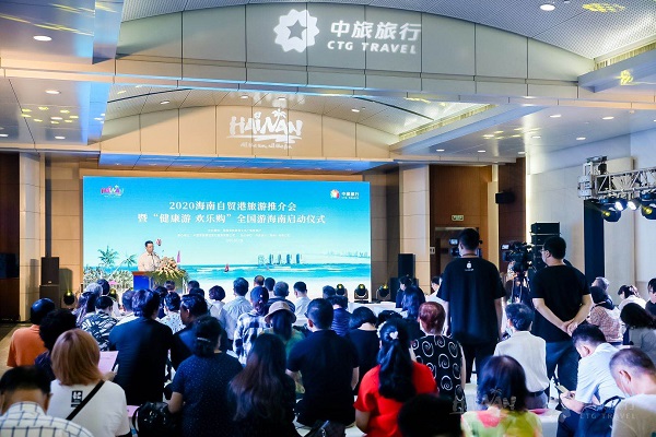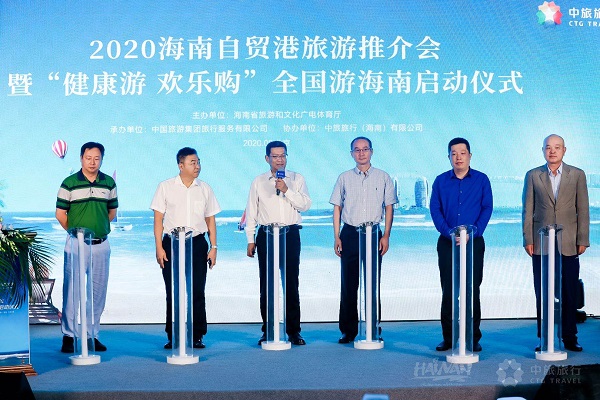 为充分借助离岛免税新政策和跨省团队游恢复契机,吸引导流国内游客,重振海南旅游市场,2020年8月7日上午,由海南省旅游和文化广电体育厅举办的2020海南自贸港旅游推介会暨“健康游 欢乐购”全国游海南启动仪式在北京举行。海南省旅游和文化广电体育厅刘成副厅长、中国旅游集团旅行服务有限公司陈荣董事长等领导及在京旅游企业、媒体代表等约150人参会。