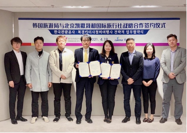 4月19日,凯撒旅游与韩国旅游发展局北京办事处在京签署旅游合作谅解备忘录,以进一步推进疫后两国旅游业的发展,为两国开展旅游、文化交流创造更加便利的文旅环境。