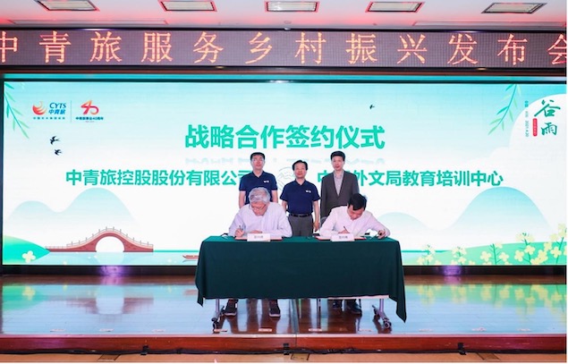 ▲中青旅与中国外文局教育培训中心签署战略合作协议